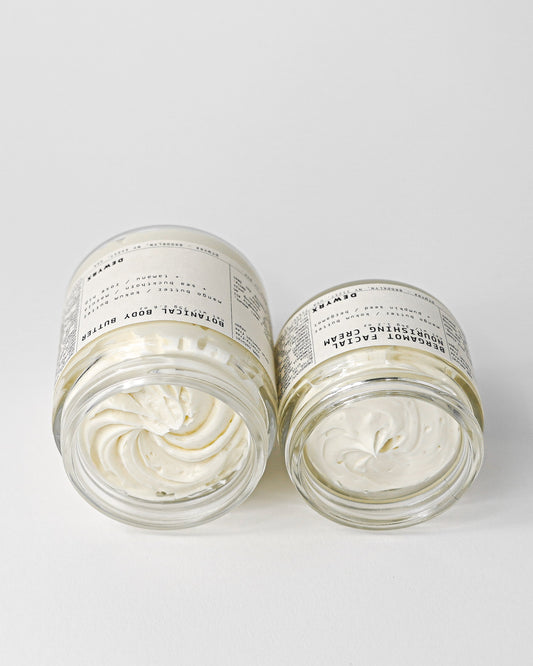 DEWYRX's Botanical Body Butter is made with 19 purposeful ingredients to help with many common problematic skin issues. Made with lightweight, non-comedogenic oils and butters suitable and safe for all skin types and all ages. Ideal for sensitive skin in need of an all natural moisturizer to relieve and soothe skin from breakouts, irritation, dryness, aging, and inflammation. Made with only the best 100% naturally derived unfiltered ingredients.